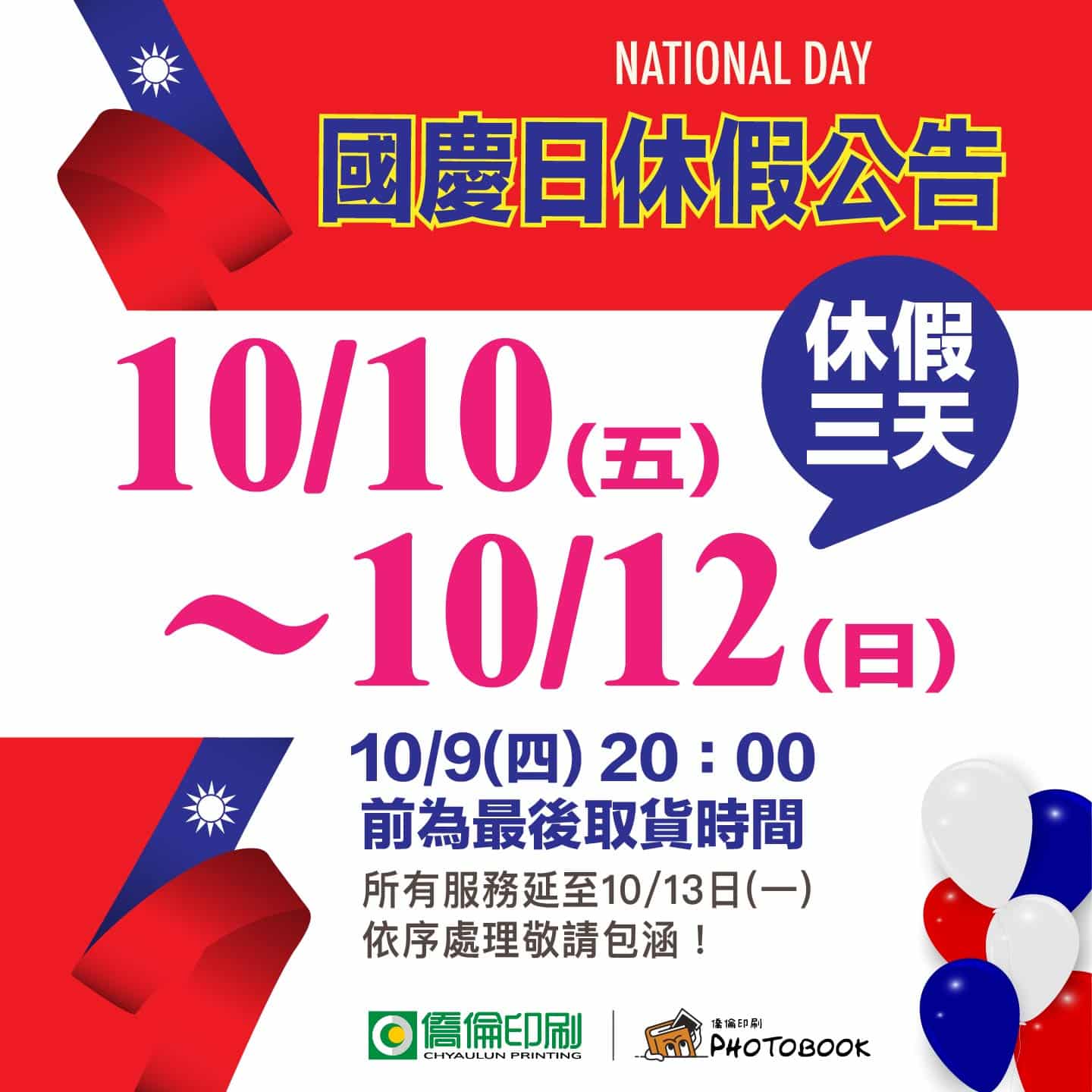 2025.10.09 (四) 晚間8:00前為休假前最後取貨時間。