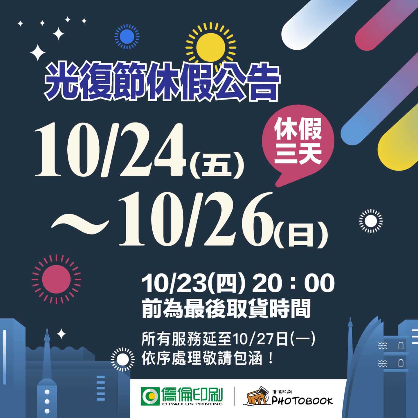 2025.10.23(四) 晚間8:30前為休假前最後取貨時間。